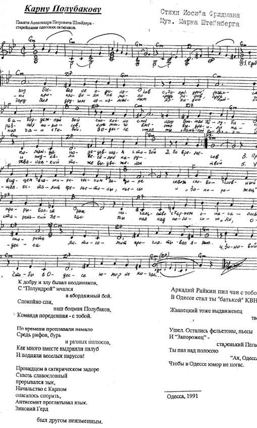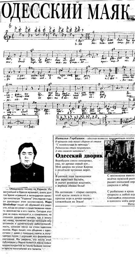 Одессит Марк Штейнберг проживает сегодня в израильском городе Петах-Тиква. А его мелодии звучали и звучат и в сибирских городках, и в зале Кремля, в столице Беларуси, и, конечно, в Одессе и Израиле.