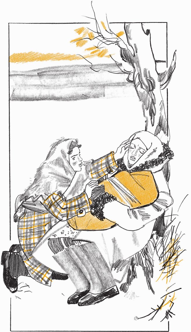 Наташа никак не могла очнуться от тяжелого тревожного сна. Надя стала тереть ей щеки снегом, и та с трудом открыла глаза.