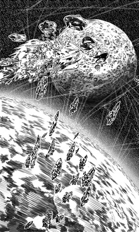 Первым обратил внимание на стремительно приближающиеся неизвестные космические объекты вахтенный «Теодора Рузвельта»: он увидел на мониторе, что какая-то туча, издали напоминающая метеоритный дождь, несётся прямо на эскадру. Вахтенный доложил о ситуации по команде. Информацию передали генералу. Ален Паулс с любопытством глянул в монитор, потом стал меняться в лице и вдруг истошно закричал: