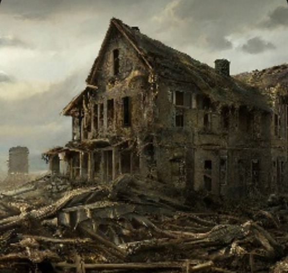 Я без разбору вышел туда, куда мне сказали. Всё было как в реальной жизни, ходили люди, ездили машины, даже птицы летали. Но было как-то мрачнее. Выйдя из парка, я увидел тот самый старый дом. Выглядел он как деревянная двухэтажка. Я стремительно двигался к нему. Когда я подошёл к входу, я увидел чёрного цвета граффити с надписью: