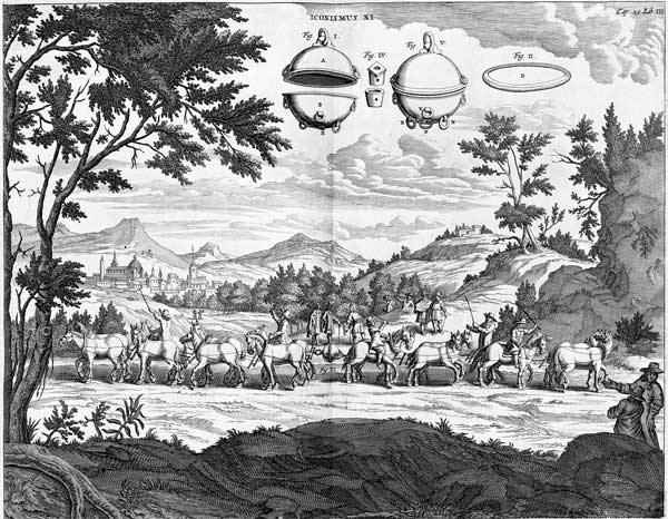 Вдохнуть жизнь – победить смертьШел 1657 год. Две команды, каждая по восемь лошадей, пытаются расколоть железный шар на рыночной площади в Магдебурге. Тщетно. Но вот в дело вмешивается маленькая девочка и поворачивает кран, прикрепленный к шару. Шар тут же распадается на две полусферы, которые держались вместе только благодаря силе вакуума. То, что было не под силу 16 лошадям, удалось сделать ребенку. Зрители убеждены, что стали свидетелями чистой магии.