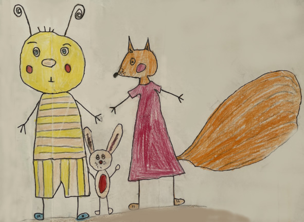Белочка Аня сказала «ПОКА!» Моне и Пчелёнку и залезла к себе в дупло.
