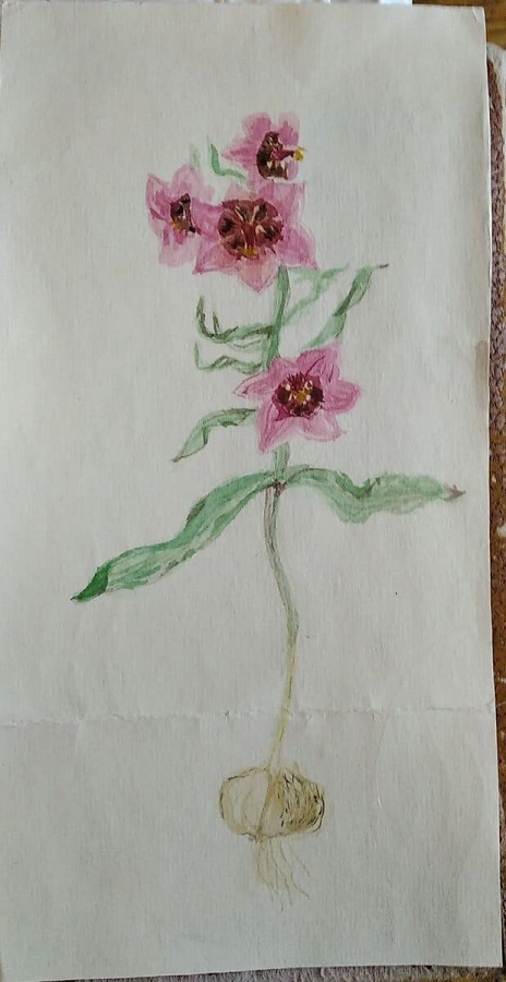 P.S. Вместо фото шлю первые опыты по рисованию. Этот цветок – роголепестник (в натуральную величину). Зацвёл у нас 2 апреля.