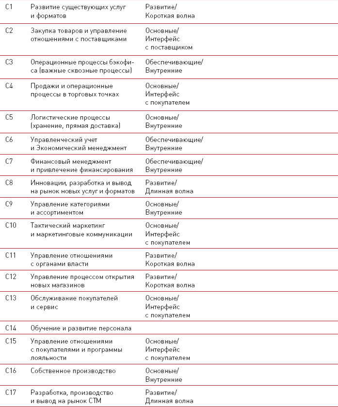 ◊ При анализе организационных способностей и соответствующих бизнес-процессов важно, кроме традиционного деления на основные, обеспечивающие и процессы развития, выделять бизнес-процессы «короткой волны», т. е. текущие бизнес-процессы, которые создают ценность на коротком горизонте, и бизнес-процессы «длиной волны», которые создают будущую ценность. ◊ Например, бизнес-процессы короткой волны – это процессы пополнения запасов и заказы поставщикам, операционное управление в магазинах, управление маркетинговыми кампаниями и т. п. К процессам «длинной волны» относятся бизнес-процессы развития существующих услуг и форматов, инновации, разработка и вывод на рынок новых услуг и форматов, обучение и развитие персонала и т. п. Именно эти бизнес-процессы позволяют обновлять жизненный цикл вашего розничного формата. Часто у розничной компании, отсутствуют бизнес-процессы «длиной волны», что ведет к резкому оттоку покупателей и снижению прибыльности в конечной фазе жизненного цикла. Сегодня жизненный цикл розничного формата может составлять 5–7 лет, в сравнении 10–15 лет, которые были 15–20 лет назад. И это заметно, большинство компаний на момент написания книги, запустили проекты по обновлению существующих форматов.