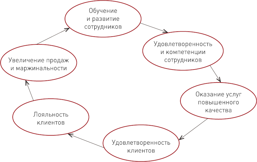 Обычно под бизнес-моделью лояльности понимается такая модель ведения бизнеса, в которой ресурсы компании сфокусированы на повышении лояльности клиентов и других заинтересованных сторон в ожидании того, что это приведет к достижению корпоративных целей [25]. Типичным примером такой бизнес-модели является следующая логика: качество продуктов и услуг ведет к удовлетворенности клиентов, которая приводит к лояльности, что в свою очередь ведет к улучшенной прибыльности бизнеса. Это позволит компании тратить больше ресурсов на развитие и удовлетворенность сотрудников, которая ведет к повышению качества продуктов и услуг и т. д.