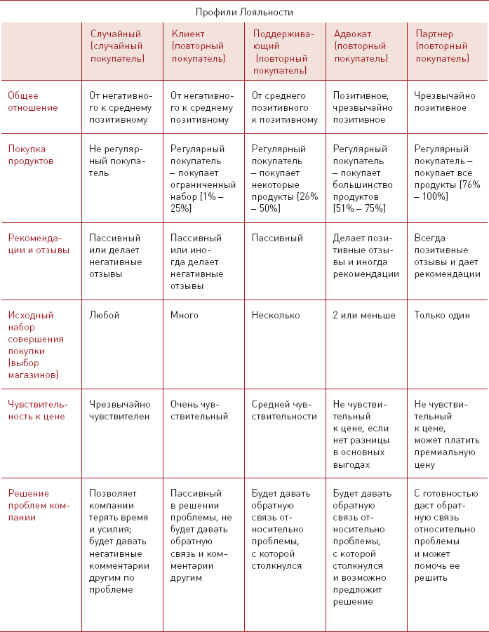 Таким образом, основываясь на том, что за год существующими лояльными покупателями были сделаны около 40 млн положительных комментариев о компании и продукции Dell (что составляло в среднем 8 комментариев на одного лояльного покупателя), дополнительная ценность, которую принес каждый лояльный покупатель, составляла 42 доллара. Положительное влияние индекса рекомендаций на рост компании отмечено и в отрасли розничной торговли в Великобритании (см. Рисунок 14). В терминах бизнес-ценности эффект лояльности проявляется через две составляющие. С одной стороны, это сокращение затрат на удержание клиентов. С другой стороны, это увеличение выручки за счет меньшей чувствительности к цене и, самое главное, за счет привлечение новых клиентов через рекомендации. Но при этом важно помнить, что поддержка лояльности неприбыльных клиентов отрицательно влияет на бизнес-модель. С помощью таблицы 6 можете провести профилирование ваших лояльных покупателей и определить для каждого типа стратегию движения по «лестнице лояльности».
