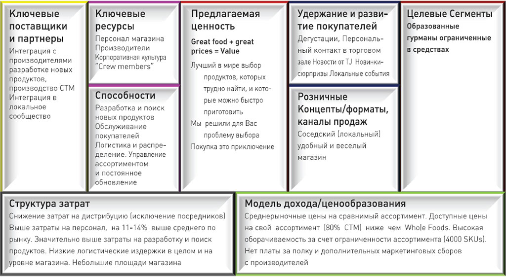 Ниже представлен пример канвы бизнес-модели одной из самых успешных средних розничных компаний США – Trader Joe’s.