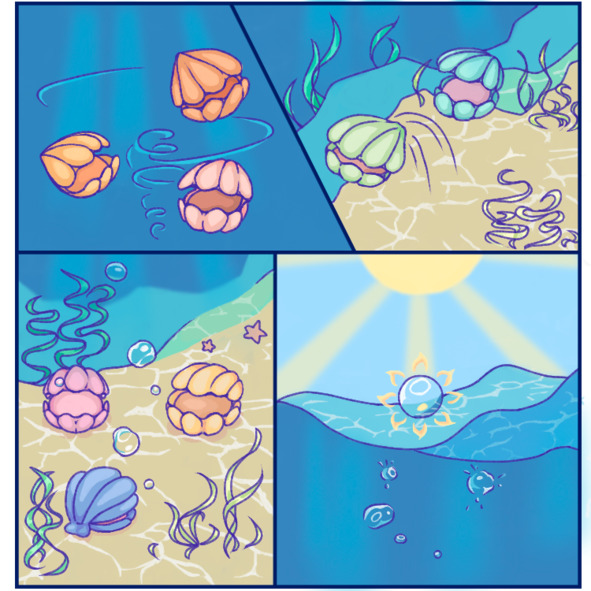 Эта игра для них не просто развлечение – по легенде, чей пузырёк доберётся до верха воды и будет поцелован Солнцем, тот сможет загадать желание, которое непременно исполнится! А потому, когда Солнце ласкает воду и есть возможность показать ему своё умение, моллюски играют именно в эту игру. Желаний у всех много, и так важно их исполнить!