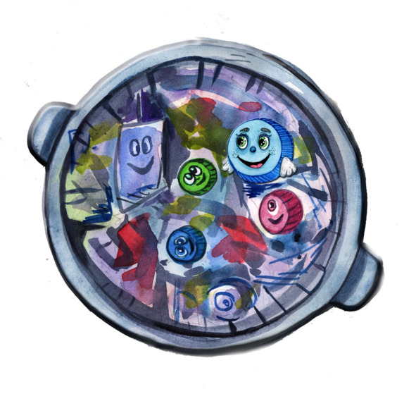 – О, какой разнообразной была моя судьба! Когда я была крышечкой для напитков с газом, то газировка веселила меня своими пузырьками, касаясь моего животика. Она напрягалась, чтобы коснуться меня, а когда у неё это переставало получаться, то мы понимали, что скоро расстанемся. Газировка всегда была весёлой, и я много смеялась, пока мы были вместе. Порой я становилась частью контейнера для детских обедов, и тогда я много чего узнавала, слушая, что рассказывают разные вещи, и даже изучала разные языки, попадая в разные страны. Моя роль контейнера заканчивалась, если он ломался или рисунок стирался, становясь непривлекательным. Но меня каждый раз отправляли на переработку.