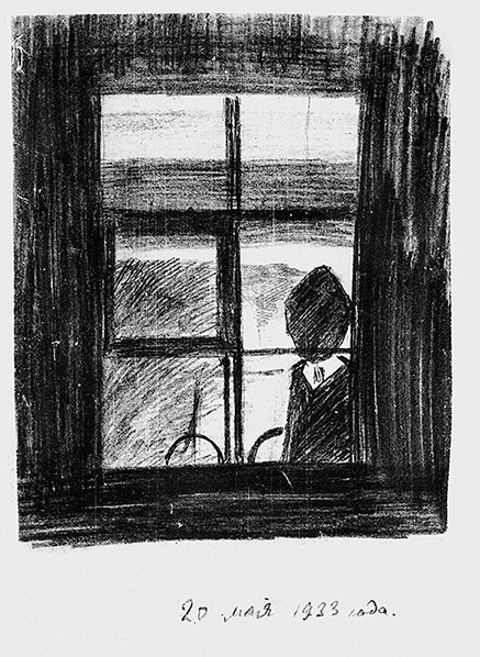 Автопортрет за окном. Рисунок Д. Хармса, 20 мая 1933 г.