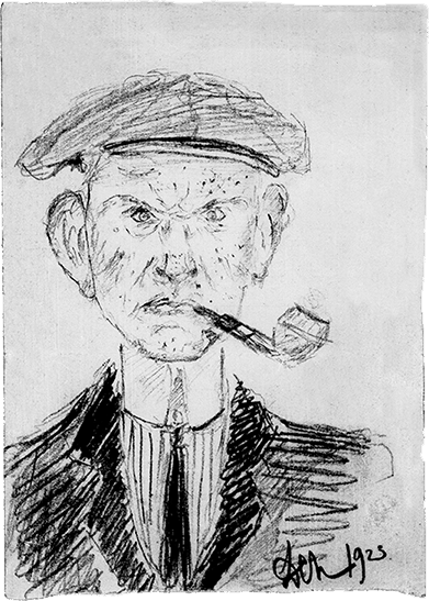 Автопортрет с трубкой. Рисунок Д. Хармса, 1923 г.