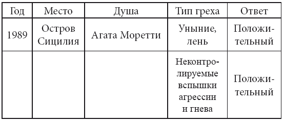 – Система начала поиск самого распространённого ответа на ваш вопрос, – ответил женский голос. – Ответ готов: души, не прошедшие испытание, вынуждены возвращаться на Грешную Землю снова и снова до тех пор, пока испытание не будет пройдено. В случае с Бернардо система предполагает, что на его пути будут встречаться женщины, похожие на Агату. Они будут вызывать в нём чувства гнева и агрессии. Происходить это будет до тех пор, пока Бернардо не простит всех женщин, которые причинили ему боль. Также Бернардо следует попросить прощения у Господа, то есть покаяться за свои грехи. Тогда Бог обязательно протянет руку помощи. Как только гнев и агрессия перестанут управлять Бернардо, кнопка «оказать помощь» станет доступна.