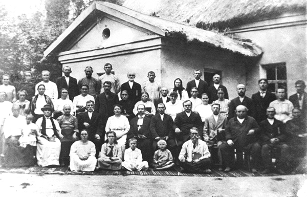 Стоят: 1,2 – неизв, 3 – Фишер, 4 – Александр Вольф, 5 – Иоганн Георг Рейтер, Георг Дёз, пастор Юстус Юргенсен, 8 – неизв., 9 – Иоганна Франк, 10–12 – неизв.