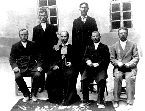 Стоят: Иоганн Франк, Эдуард Шульц – учителя.
