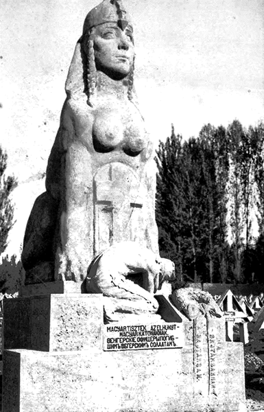 На входе стоял большой внушительный памятник. Фигура сфинкса со склонённым австрийским солдатом защитного цвета. Здесь, в Средней Азии, было похоронено несколько десятков тысяч военнопленных, погибших от голода и болезней.