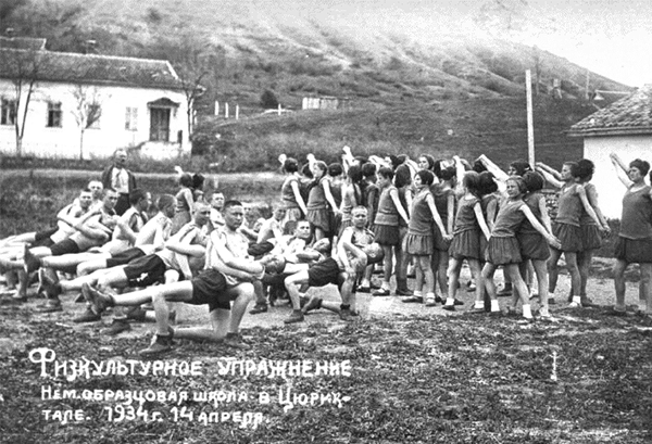 «Для хорошего усвоения»В Цюрихтале находится единственная немецкая средняя школа в Старо-Крымском районе, считающаяся образцовой школой в Крыму. Она также обслуживает немецкие деревни соседних районов. Для этого в школе устроен большой интернат, где ученики за 30 рублей в месяц обеспечиваются жильём, спальным местом, довольствием и др. Но за это школьники интерната должны один летний месяц отработать в школьном хозяйстве, помогая со сбором урожая.