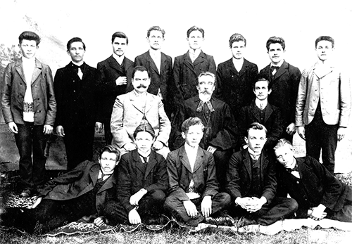После двух лет обучения, 1 мая 1907 г., сдали экзамен 23 ученика, 8 из них получили красочные похвальные грамоты, и один из них, к моей великой радости и неописуемому счастью, искренне ваш, Эдуард Шульц. В день выпуска наш класс сфотографировался. Мне это стоило очень дорого, целых 75 копеек, но зато осталась хорошая память на всю жизнь.