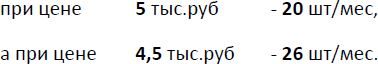 При повышении цены на 10 процентов, объем может упасть на 20 процентов, до 800 единиц, при этом прибыль останется прежней. При повышении цены на 20 процентов объем может упасть на треть, чтобы размер прибыли не изменился.