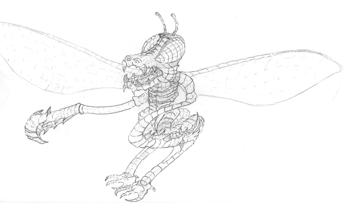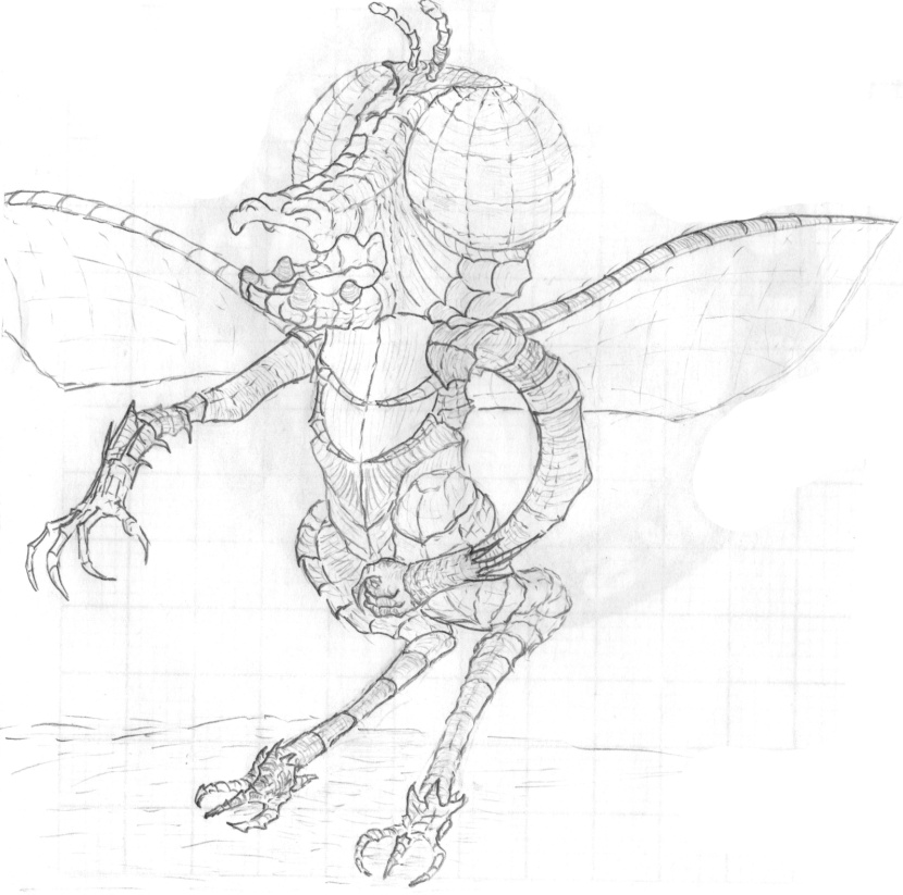 Дальше всё происходило стремительно. Четыре аз-жарца выпорхнули из пролома в породе и моментально угодили в ловушку. С криком «Давай!» Най-Гарк ринулся на первого жарца (Жарцы – насекомые небольшого роста, взрослому аянцу были немного выше колена) и ударил его со всего маха ногой. Этот аз-жарец не смог ни сманеврировать, ни защититься, по сути, он не понял даже, что случилось. С невероятным для его комплекции разгоном, он влетел в большой каменный валун справа от трещины и, полностью переломавшись, убился об него. Было слышно, как треснул его карапакс и как насекомое, истекая белой кровью, слегка подергивая конечностями, за миг до того как испустить дух, что-то проскрипело остальным. По сигналу Сай-Дмар спрыгнул с валуна, перемахнув тело первого убитого жарца и потянув сетку, перекрыл тем самым путь к отступлению в трещине в скале. Тогда аз-жарцы, которых явно застали врасплох, попытались улететь. Ни-Нол появился как раз вовремя и ударил ближайшего летевшего на него аз-жарца с силой древком «копья» по левой стороне тела.