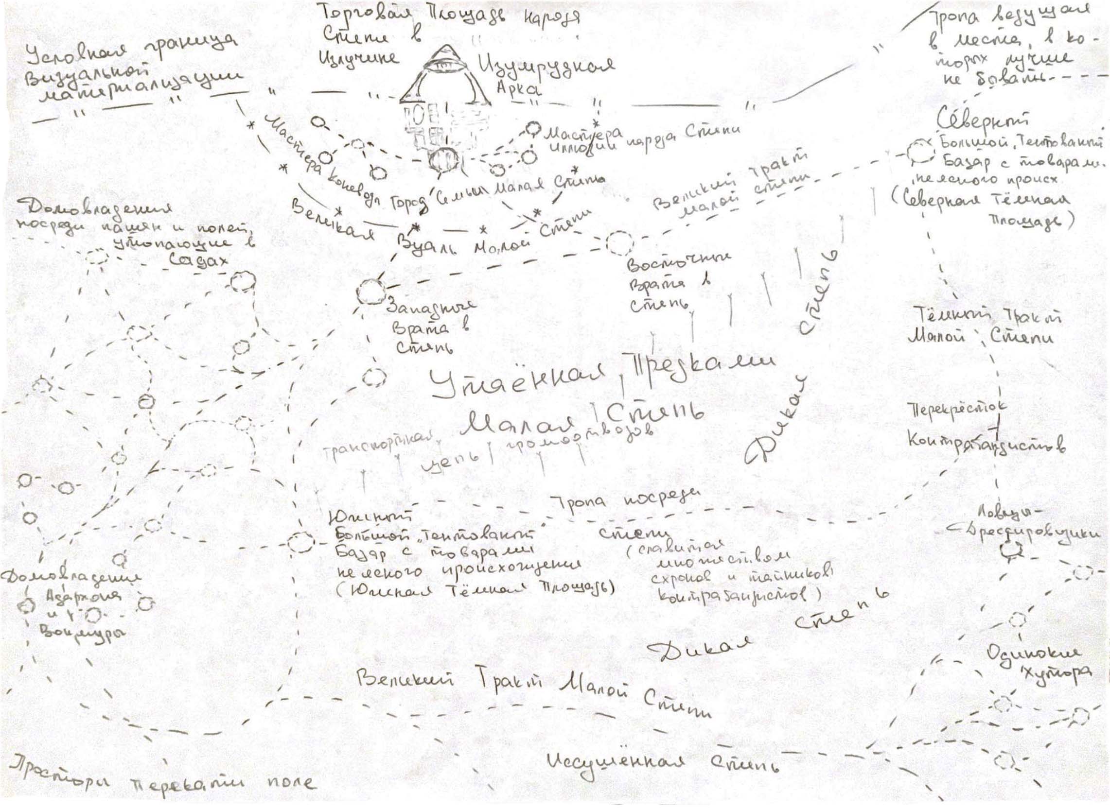 Она держалась за него изо всех сил, потому что в этот момент по ощущениям её буквально сдувало с поверхности Визардуса. Она поняла, что расстояние преодолевалось уже какими-то скачками. Прямо по ходу движения стали вырисовываться постройки довольно крупного города, это Западные Врата в Степь. Её скакун начал смещаться левее, и город остался по правую руку. Но не постройки приковали к себе внимание Ворганы, а тёмная курящаяся субстанция, которая стояла высокой стеной на горизонте, верхнего края её не было видно. Это Великая Вуаль Малой Степи, благодаря ей никто в Городище в Излучине даже не подозревает об этом месте. Почти никто. Вуаль представляет собой разрыв материи. Сказать совсем утрировано, там ничто, там быть нельзя. Эту область преодолевают за счёт скачка Ураганного Скакуна. Это, видимо, и является проблемой для остальных. Попадание в Вуаль неизбежно отправляет на поиски Разлома.