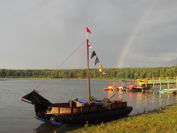 Летом 2017 года мы, скромная компания яхтсменов, расположились палаточным лагерем на крутом берегу озера Большой Кисегач. Среди нас была довольно примечательная личность – Александр Петрович – человек с военным прошлым и соответствующими манерами: громким командным голосом и привычкой к четкой субординации. Спорить он не любил: как скажет, так и будет, никто не смел перечить. Выйдя на пенсию, он всерьез увлекся парусными судами и своими руками смастерил дракар – корабль викингов, в переводе с древнескандинавского буквально «корабль-дракон». Дракар Александра Петровича изначально был куплен и поставлен на учет как двенадцатиместный надувной катамаран. Но после того, как над ним своими золотыми руками поколдовал Александр Петрович, судно оказалось на себя не похоже – неизменным осталось лишь официальное наименование в паспорте плавсредства да поплавки, которых всё равно не видно. На надувном катамаране Александр Петрович постелил фанерную палубу, оборудовал его сиденьями, между поплавками устроил маленький трюм, приходившийся очень кстати во время дальних походов. Кроме того, катамаран, ныне дракар, был снабжен мачтой с традиционным полосатым чёрно-синим парусом викингов и необычным для таких транспортных средств бензиновым двигателем «Меркурий», к которому Александр Петрович, умелый кузнец и сварщик, приладил водомётное кольцо для защиты лопастей от камней на мелководье и увеличения маневренных характеристик судна. Появились в арсенале и пять пар вёсел. Получился этакий парусно-гребно-моторный гибрид. В сложенном состоянии дракар помещался в обычный автомобильный прицеп, на сборку-разборку уходило два часа. Добрая половина рассказов Александра Петровича была о его любимом детище – дракарушке. Мастер разговаривал со своим творением, словно с человеком: хвалил или, напротив, выговаривал за строптивость. С чьей-то лёгкой руки нашего судостроителя мы в шутку так и прозвали – Дракаром Петровичем.