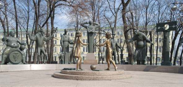 В 2001 году на Болотной площади установили скульптурную композицию «Дети – жертвы пороков взрослых» (автор – М. М. Шемякин). На ней изображены 13 людских пороков в виде жутковатых бронзовых фигур, стоящих полукругом, и стоящих в его центре детей с завязанными глазами. Некоторые фигуры тянут к детям свои руки, как бы зовут их к себе. А дети с повязками на глазах ничего не видят, ориентируются на слух, поэтому могут легко соблазниться уговорам фигур-пороков.