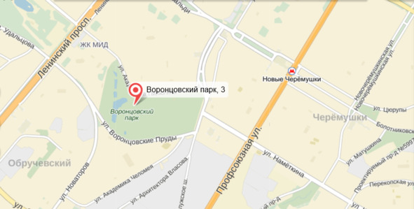 Проезд: метро Новые Черёмушки, автобусы 616, 721 до остановки «Воронцовский парк».