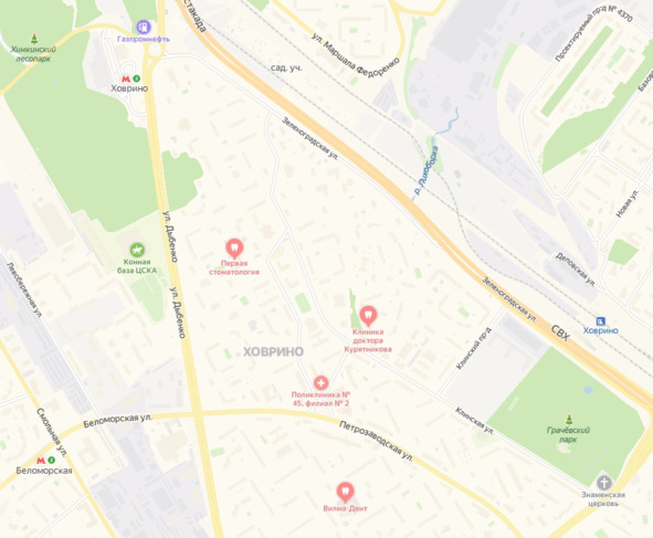 Парк расположен в районе метро Ховрино. Рядом находится старинная усадьба, в которой размещается больница восстановительного лечения. Неподалёку можно найти могилу героев-панфиловцев, погибших осенью 41-го года во время обороны Москвы.