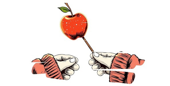 В первый день предновогоднего рынка, под вечер, появилась молодая женщина с маленькой капризной девочкой. Девочка упиралась, не желая идти на старый рынок. Мать с дочкой готова была уйти, но продавец с ближайшего прилавка доброжелательно обратился к ним и протянул два яблока в карамели на палочке.