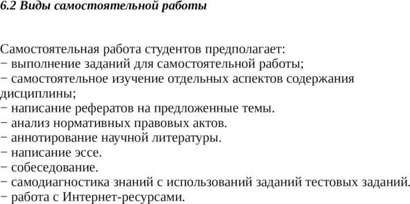 6.1. Самостоятельное изучение обучающимися разделов (тем) дисциплины (количество тем выбирает преподаватель самостоятельно)