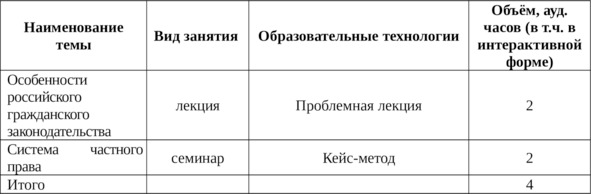 В процессе организации деятельности по освоению обучающимися дисциплины «Теория гражданского права» преподавателю необходимо учитывать следующие аспекты:
