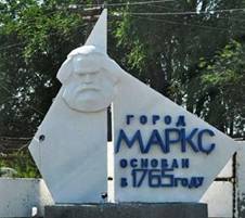 Маркс основан как немецкая колония и точная дата его создания до сих пор вызывает вопросы у историков. Официальной считается 27 августа 1766 года, но существуют версии и про 1764, 65 год. Создал новую немецкую колонию вызыватель соотечественников на плодородные саратовские земли бельгийский барон Фредериком Борегардом де Кано. Здесь была создана резиденция барона. Получила колония название в честь императрицы, Екатериненштадт. Будущий Маркс строился на левом берегу Волги, тогда назывался Луговой стороной. Колония стала самой крупной из вновь создаваемых, основателем ее считается военный инженер Иван Райс. Постепенно колония окрепла,началось ускоренное экономическое развитие. Активно принимала и перегружала грузы, в основном, хлеб, пристань. Появились склады, амбары, мельницы. Серьезной строгой торгового баланса Екатериненштатда стал американский сигарный табак, округ быстро стал центром выращивания этой культуры в Поволжье, уверенно занимал второе место по его производству в Российской империи. Развивалось образование, в 1832 году здесь отрывается Русское центральное училище, первое среди всех немецких колоний в России. В 1848-51 году был открыт памятник Екатерине Второй, средства на который собирало все село.Памятник был уничтожен после революции. С середины XIX века до 1919 года село носило второе официальное русскоязычное адаптированное название – Баронск, по титулу основателя Кано де Борегарда. С 1918 года в поселке работала советская власть. В 1919 он был переименован в Марксштадт, по инициативе большевика и журналиста Петра Чагина. Некоторое время город был в составе автономной республике немцев Поволжья. В августе 1941, после начала ВОВ, немецкое население было депортировано в Сибирь. Город вошел в состав Саратовской области. В 1942 году Марксштадт получил название Маркс.