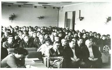 Сошлись на том, что мы выслушаем его выступление, признаем свою вину, а квартиру отдадим Вите Орлову. На станцию привезли из Грузии четыре десятка шкафов функционально группового управления (ФГУ). Начальник стройки называл их «функция Ф». Во время проверки, Марк со своей командой обнаружил, что все они собраны неправильно. Нужно перепаивать более сотни концов в каждом шкафу. Предложение отправить шкафы обратно на завод, отпало сразу. Когда они вернутся, и в каком виде никто не брался предсказать, а сроки уже поджимают. Решено приводить шкафы в порядок на месте. Владлен Архипов собрал все резервы и прислал к нам. Среди прочих приехали десять ведущих специалистов из бригады Курской АЭС. Мы с Женей Смирновым их приняли с почётом. Поселили в станционном профилактории. Там завтрак и ужин, на работу и с работы везёт автобус. Сами бы так жили. Но ребята оказались недовольны. На курской АЭС было лучше. Жили с семьями, от поездок отвыкли, да и командировочные платили больше. Пришлось приводить их в чувство, используя всё богатство великого русского языка. Тем временем Марк обнаружил, что все инверторы в шкафах не работают. Руководство станции послало рекламации на завод. А время шло. У нас в стране была устоявшаяся привычка брать обязательство заканчивать работу к праздникам. В этот раз руководство стройки, думаю не без давления извне, взяло обязательство пустить блок 800 МВТ к 7 ноября 1980 года. Но ситуация складывалась так, что стройка не успевала к этому сроку. Интересно наблюдать эти самые извне. Приезжает на стройку заместитель министра энергетики. Мне он напомнил одного из героев романа Марти Ларни. Постоянно демонстрировал своё слабое здоровье. Ведёт оперативное совещание, в помещении сидит человек восемьдесят.