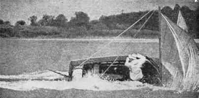 Меня он приглашал прокатиться с ним на Летучем Голландце. Я долго не соглашался, в глубине души подозревая, что действительность будет, не так красива и приятна, как кажется с берега. И мои подозрения оправдались. В конце концов, через год Юра меня уговорил. 9 мая он открывал сезон, и я пришёл. Яхту мы вывели из эллинга и стали её собирать, ставить шестиметровую мачту, крепить такелаж. Подняли паруса: грот и стаксель. Собрали, пошли.