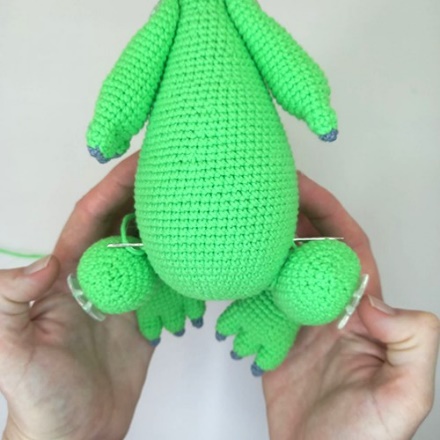 Во-вторых, устанавливать крепления, можно только заранее зная, где они должны быть, при этом детали еще не будут довязаны. Конечно, если вы вяжите по чужому МК, с этим проблем не должно возникнуть, но, если вы вяжите свою авторскую игрушку, придется вязать несколько образцов.