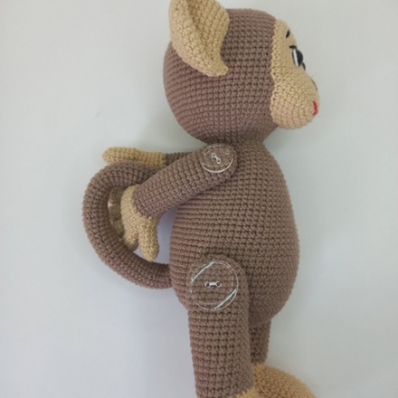 Примечание 2: При подборе пуговиц для крепления, точно также, как и материалов и инструментов, нужно руководствоваться не только рекомендациями в МК. Так, например, при выборе пуговиц нужно ориентироваться на свою плотность вязания. Пуговицы не должны быть больше, чем ширина конечности, так ваша игрушка будет выглядеть достаточно эстетичной, аккуратной и конечности будут хорошо прилегать к телу (фото 10).