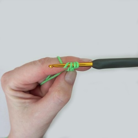 5. Крючком захватываем нить на указательном пальчике (фото 50) и протягиваем ее через все петельки на крючке (фото 51)