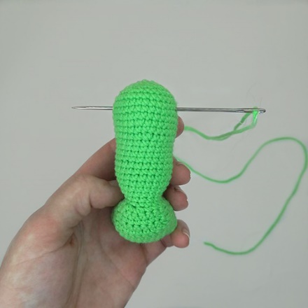 2. Кончик нити, оставшейся от вязания конечности вдеваем в иглу