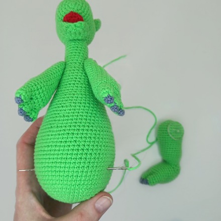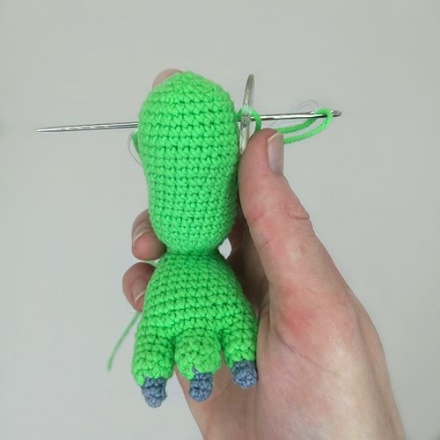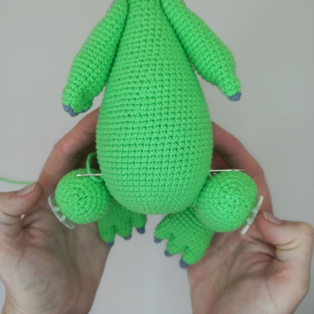 Важно!!! Не пропускайте ни одного основания на хвостике и не одной ножки или ряда на теле при пришивании конечностей.