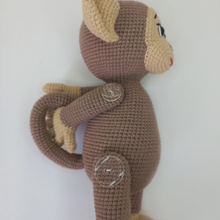 Примечание 2: При подборе пуговиц для крепления, точно также, как и материалов и инструментов, нужно руководствоваться не только рекомендациями в МК. Так, например, при выборе пуговиц нужно ориентироваться на свою плотность вязания. Пуговицы не должны быть больше, чем ширина конечности, так ваша игрушка будет выглядеть достаточно эстетичной, аккуратной и конечности будут хорошо прилегать к телу (фото 10).