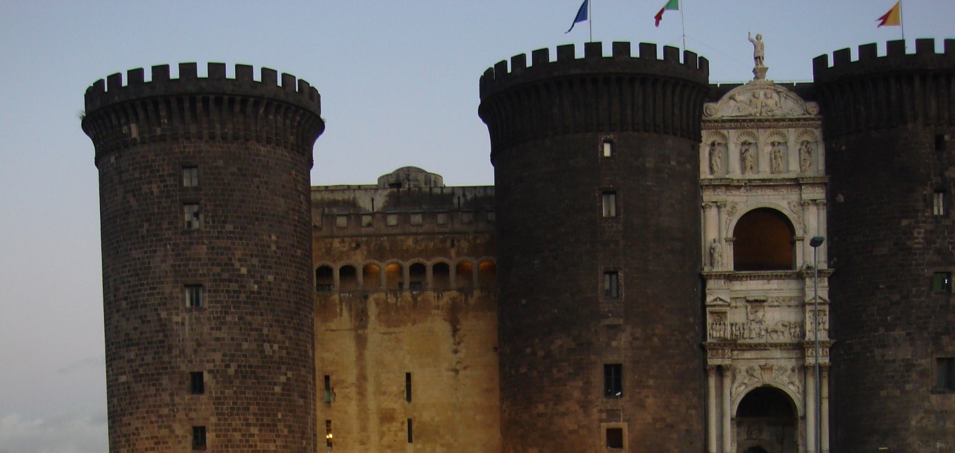 Замок этот начал строить еще в конце тринадцатого века сицилианский король Карл I Анжуйский, брат французского короля Людовика Святого. Вот, как перенес столицу из Палермо в Неаполь, так и начал. Но сам пожить в новом замке не успел. Бесчинства французов на Сицилии ужасно надоели местным жителям. А перенос столицы с острова на материк стал последней каплей. Началось восстание, так называемая Сицилийская Вечерня. Почти всех французов перебили. Война длилась несколько лет, в результате Сицилия перешла под руку Арагонской династии. Но к замку Кастель Нуово это уже не имеет никакого отношения. Карл II, сын Карла I устроил-таки в замке королевскую резиденцию.