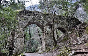 А еще мы сходили в Долину мельниц и Железную Долину. Они тянутся одна за другой в горном ущелье вдоль русла реки Каннето. Когда-то здесь была промзона: бумажные мельницы, фабрика Нолли по производству макарон, металлургический завод. Нынче это лишь живописные руины на берегах заросшего буйной зеленью ручья. Арочные мостики, лесная тропа, лимонные сады чуть выше, на склонах гор. Чтобы сюда попасть надо обогнуть Музей бумаги и выйти на лестницу со стрелкой: «Valle delle Ferriere». Если уж переводить дословно, то это не Железная долина, а Долина металлургического завода. Вот отсюда и двигайтесь – семьсот пятьдесят ступеней вам под ноги.