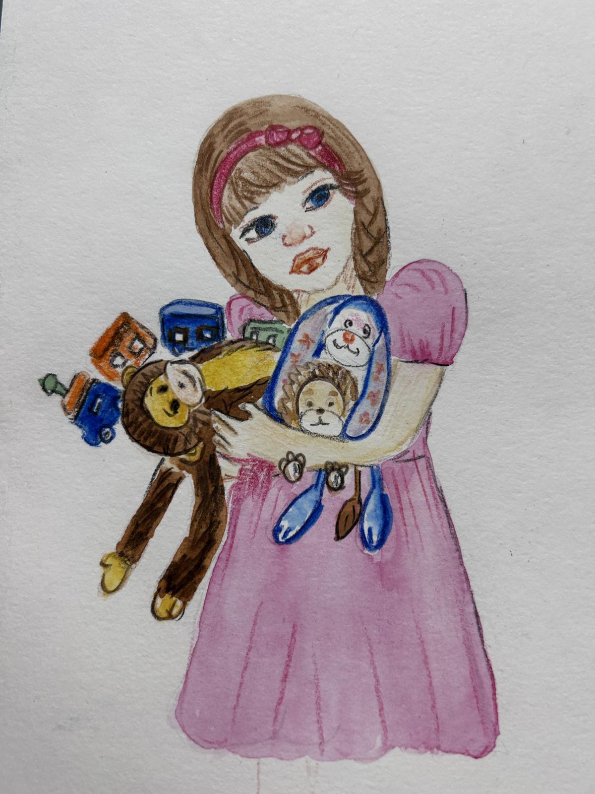 Как-то раз мама с папой принесли сверток, который шевелился и пищал. Лена подумала, что ей купили щенка с радостным криком: -“Ура мне купили живую собачку” бросилась к свертку, но это был вовсе не щенок, а живая, маленькая куколка. Папа сказал Леночке, что это младшая сестренка Оля, теперь она будет жить с ними всегда. Но, Лена вовсе не просила сестренку, она хотела собаку. И по этому поводу устроила истерику, но папа быстро увел Лену, в комнату и строго сказал: "Пока не успокоишься, будешь сидеть здесь"