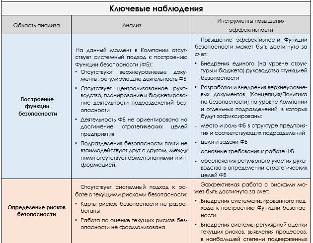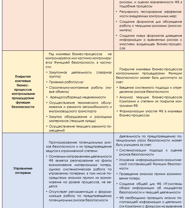 все подразделения безопасности перешли на единый формат активностей, гарантирующий прозрачность и объективность показателей результативности, а также позволяющий оценить эффективность затрат за это направление.