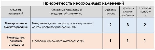 Приоретность необходимых изменений