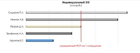 Введение единого и объективного показателя (ЭЭ), кроме того, позволяет провести ранжирование сотрудников внутри подразделений безопасности (накопительным итогом за год):
