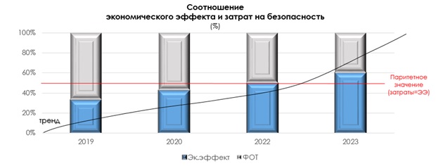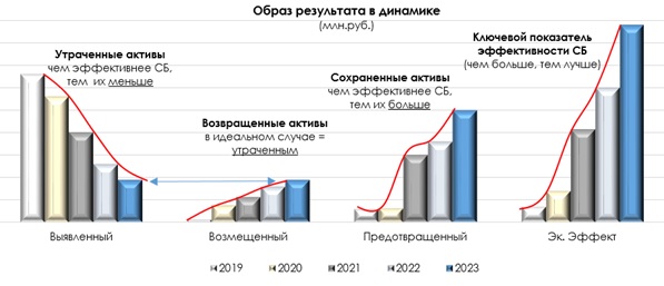 максимизация экономического эффекта от деятельности подразделений безопасности (позитивного влияния СБ на финансовые результаты Компании) и его рост год к году.