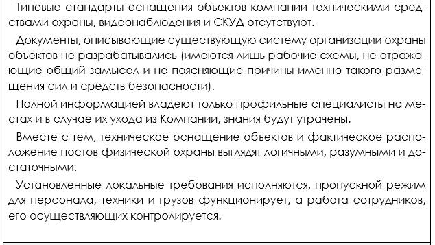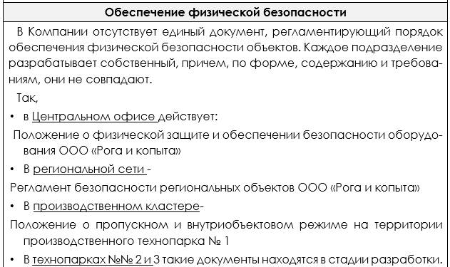Перед тем как приступить к решению амбициозной задачи построения системы безопасности необходимо понять какими силами и средствами мы располагаем, что хорошо, чего не хватает, какие участки следует трансформировать (создавать с нуля) немедленно, а какие можно сохранить в неизменном виде.