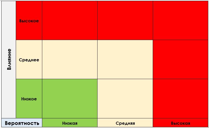 На ее основании, формируем тепловую карту рисков: