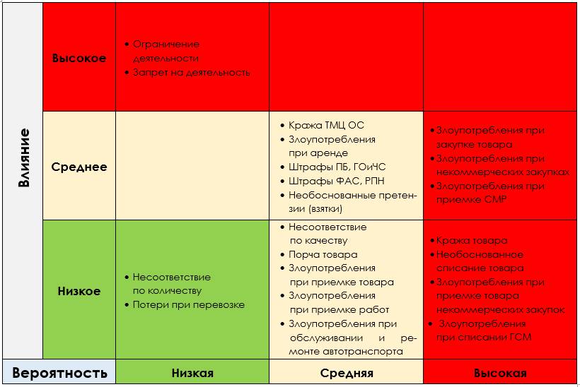 На основании полученных результатов формируется Карта рисков: